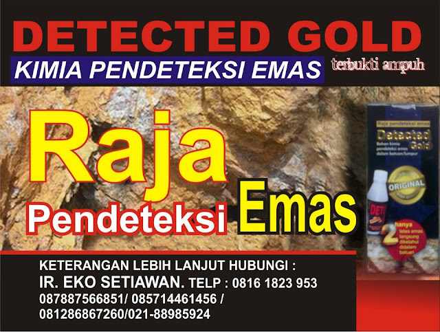 DETECTED GOLD adalah bahan kimia yang sangat dibutuhkan oleh setiap penambang emas, penggunaan kimia ini dilakukan untuk mengetahui terlebih dahulu apakah batuan / lumpu/ material yang akan diproses sudah jelas mengandung emas, setelah itu apakah emas yang ada di dalam batuan dalam jumlah banyak (optimum) atau sedikit (minimum). Langkah ini sangat diperlukan agar kita tidak salah dalam proses penambangan. Apabila kandungan emas ada dalam jumlah banyak pada saat cairan hasil pelarutan batuan ditetesi DETECTED GOLD akan timbul warna UNGU TUA, sebaliknya apabila kandungan emas sedikit apabila ditetesi DETECTED GOLD akan timbul warna MERAH MUDA dan apabila TIDAK ADA PERUBAHAN WARNA maka bisa disimpulkan batuan tidak mengandung emas ( BATUAN SEPERTI INI TIDAK AKAN MENGHASILKAN EMAS )